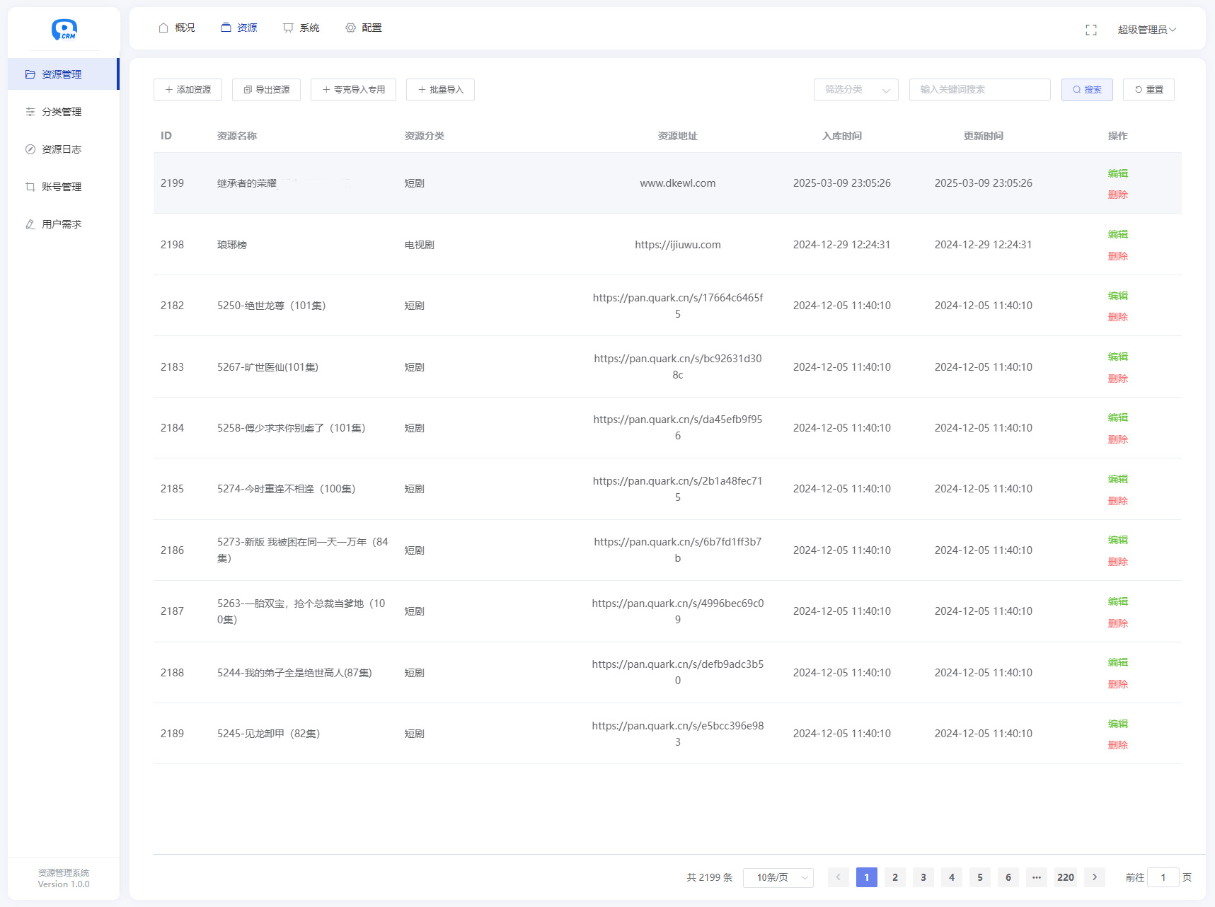 基于ThinkPHP框架开发的影视资源聚合平台,实现夸克网盘资源的高效搜索与管理。支持多场景影视资源分发需求,提供稳定的资源转存服务。